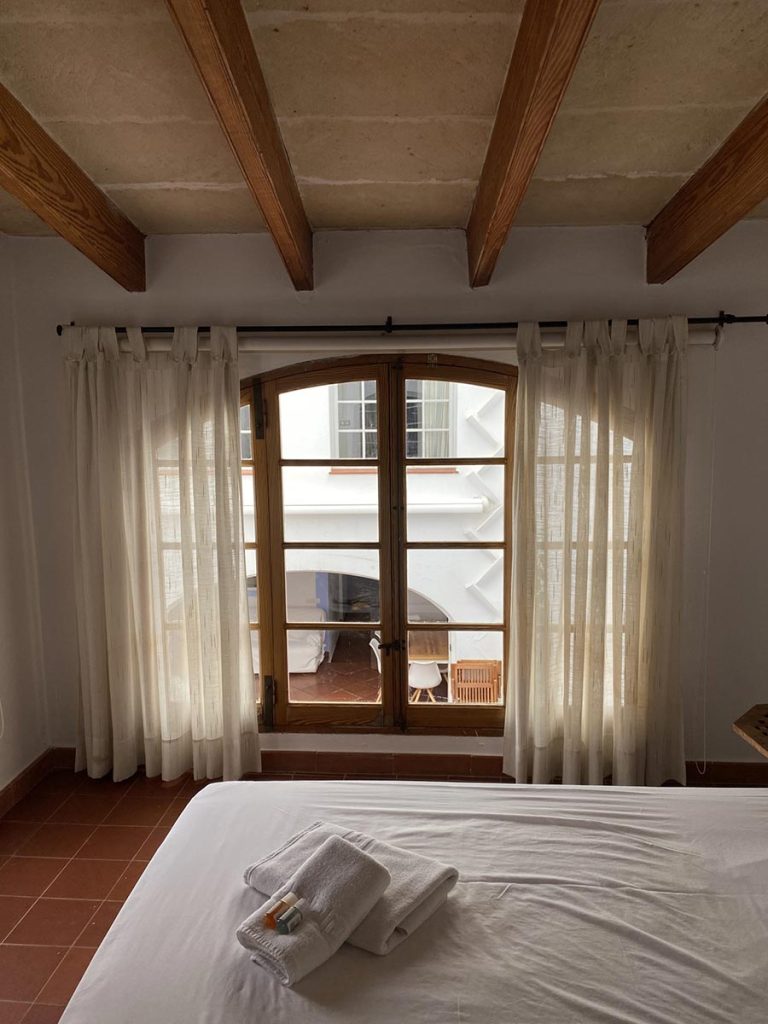 En la planta baja de la construcción principal nos encontramos con una amplia entrada con bóveda de marés, un acogedor comedor cubierto por otra bóveda y una cocina office que da paso a un salón muy luminoso con salida al patio. Este patio dispone de una pequeña piscina y otra construcción en donde nos encontramos con dos habitaciones de invitados y un baño.