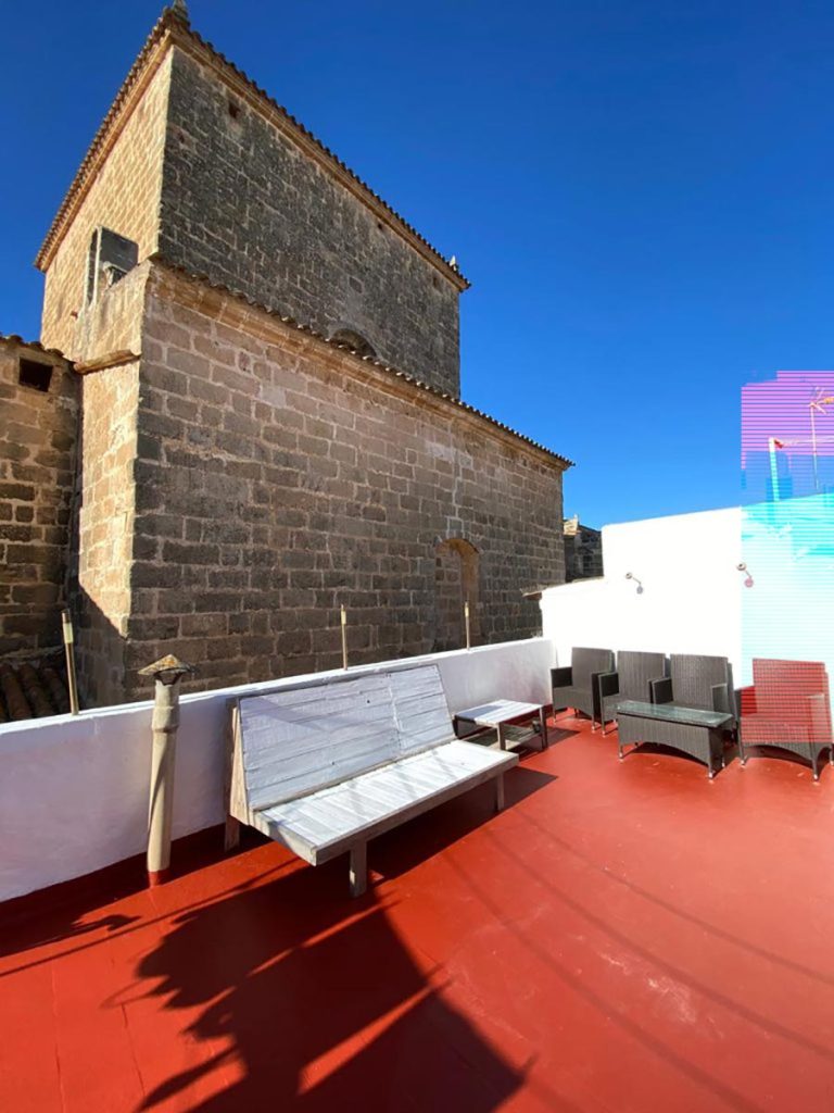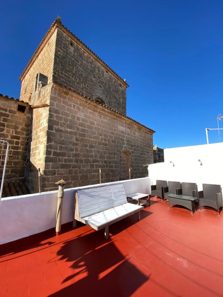 Una terraza con vistas a la iglesia. Repicar de campanas, una suave brisa y la luz del atardecer. Me pasaría horas aquí.