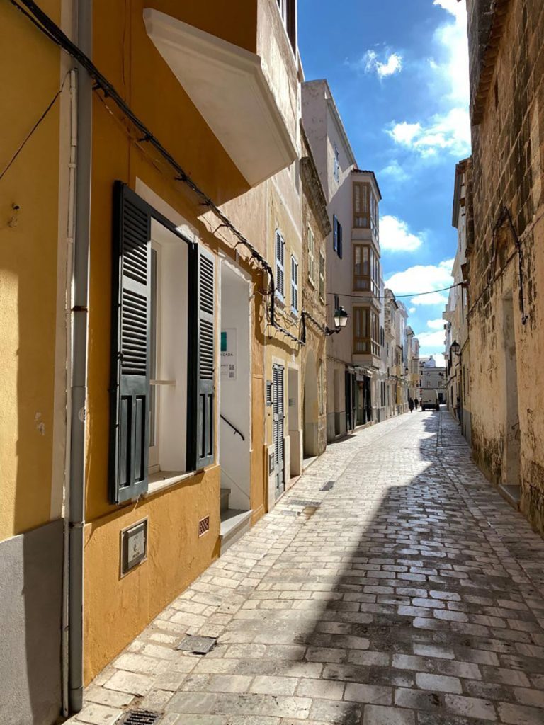 No cabe duda, tener una casa en esta calle es tener un tesoro. Y más si es como esta, con auténtico carácter menorquín. Caminando entre callejuelas por donde se cuela el sol, donde se respira paz y silencio, donde aparece una casa con un carácter único, en una ubicación inmejorable. Paredes enyesadas, detalles pintorescos, una luz especial y una terraza dónde pasarse horas.