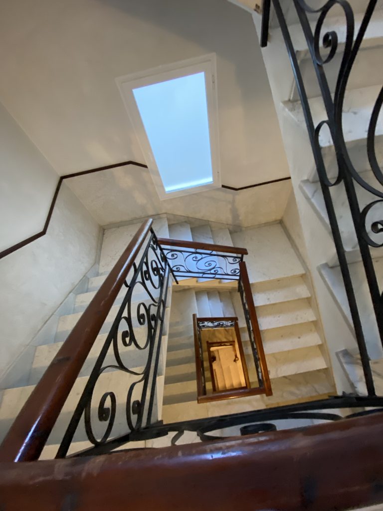 Entrando, me imagino las múltiples posibilidades que tiene. Es un piso “como los de antes” con techos altos, muchas habitaciones y un salón comedor con espacio para grandes sobremesas, rincón de descanso, y un ventanal inmenso, con vistas super despejadas, donde entra mucha luz.