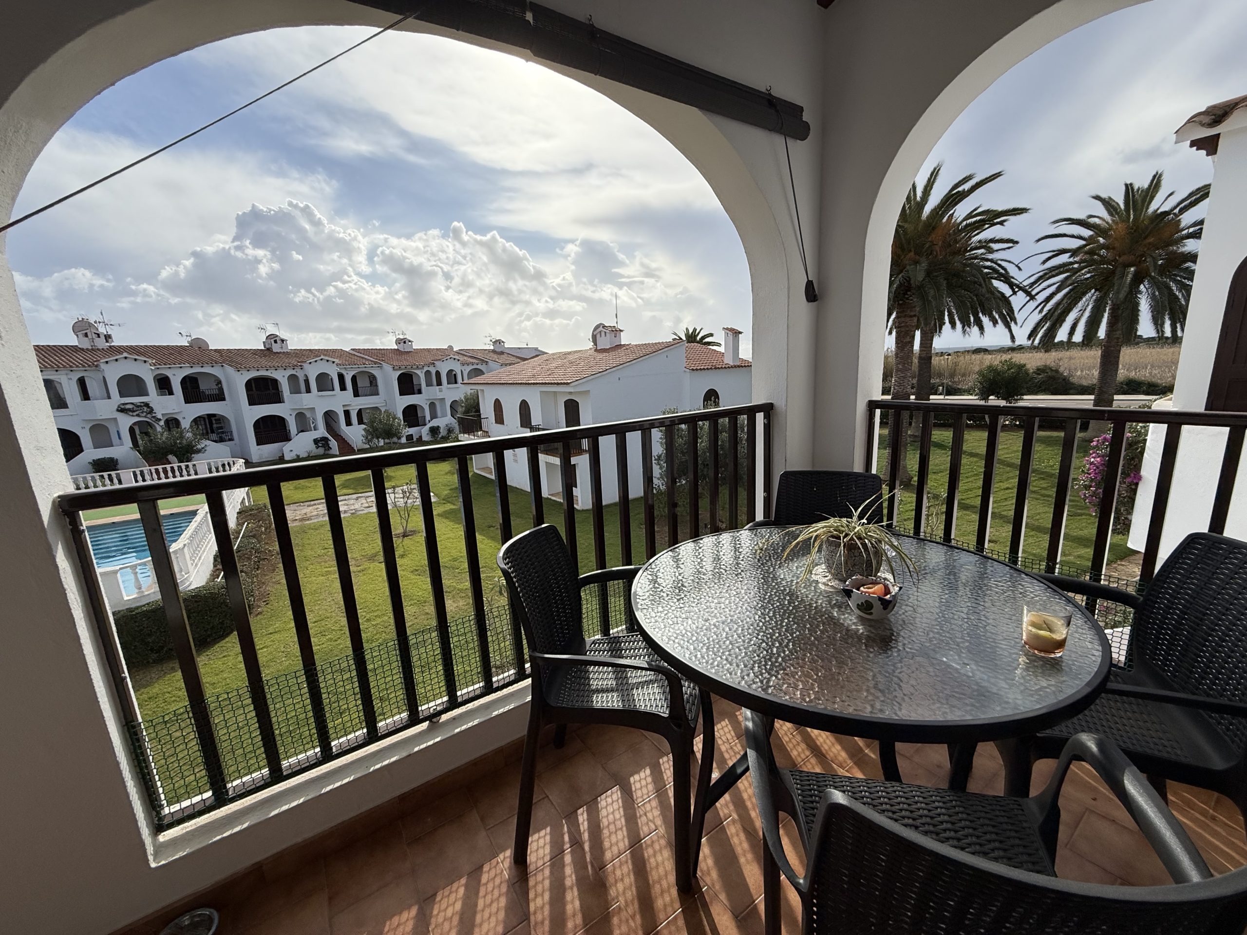 Se ubica en una zona de jardines eternos y cuidados, fachadas llenas de buganvilias, paredes enyesadas: una típica estampa menorquina. Al fondo la perfecta postal: la playa de Son Bou, una de las playas más largas de la isla, e ideal para toda la familia. Literalmente a 100metros del apartamento.