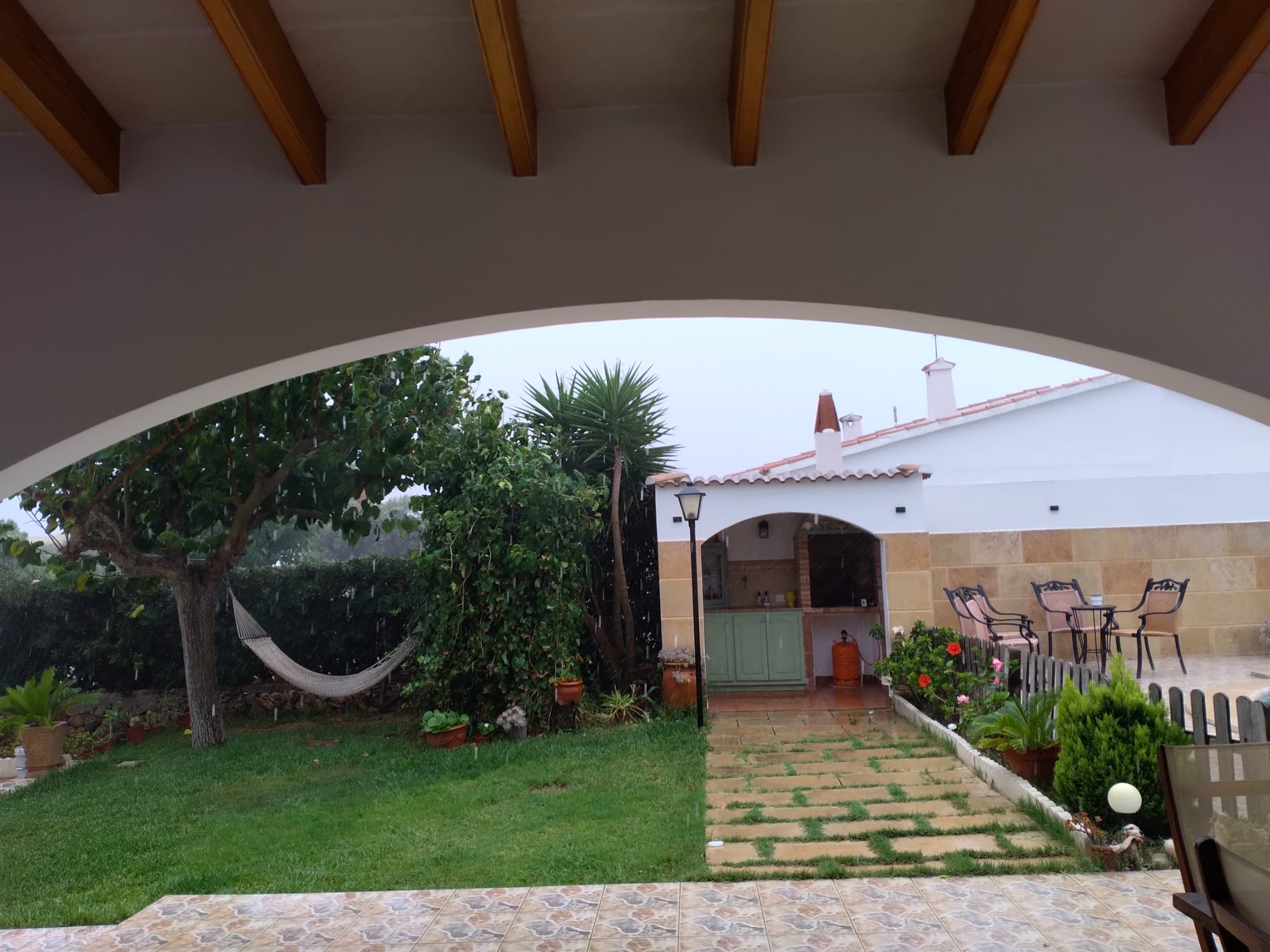 Ubicado sobre una parcela de 862 m², la vivienda destaca por su cuidado jardín con césped, frutales y huerto, una piscina de 45 m² con valla, barbacoa de obra y dos porches, uno destinado a zona de estar y otro a comedor. Además, cuenta con ducha exterior con agua caliente, aseo, cochera y un gran terrado con posibilidad de habilitar una habitación y un baño adicionales.